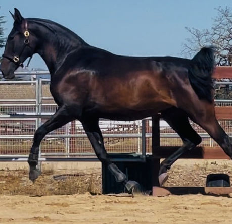 VENUS is a gorgeous black bay ANCCE inscribed filly with exceptional movement and destined for prominence. A born athlete, she has exhibited an innate ability to excel in dressage from the very beginning. She descends from prominent Spanish champion bloodlines including her grandsires Nemo de Vida and Romero de Trujillo - SICAB Absolute Champion. Her sire Romero de Naranjo is a proven champion (pictured). Available to an approved home, reluctantly offered due to the need to downsize. Located in northern California. MUST SEE to appreciate.