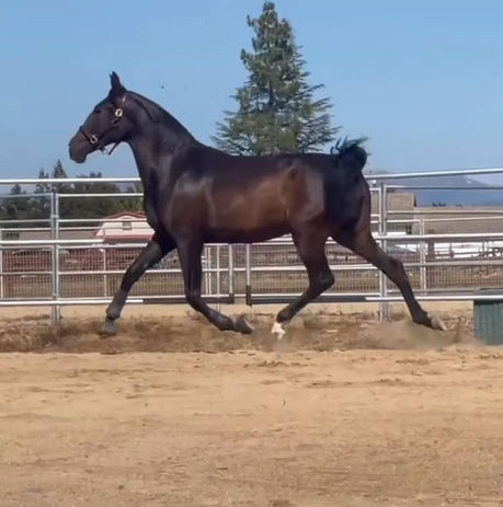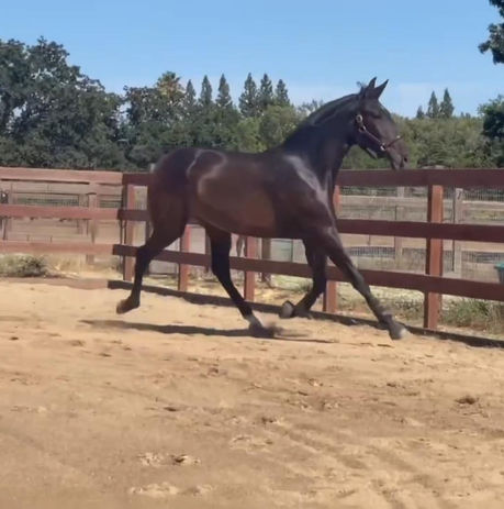 Gorgeous dark bay revised mare unstarted with a remarkable temperament and desire to be your best friend. She is the 3/4 sister to the mare OCEANA (shown below), both exhibit the classical body type that was once more common and now difficult to find. This baroque type is still sought after by many aficionados but they can be hard to find as the breeders typically keep them in their programs. She’s very sweet and we don't want to part with her, only available due to needing to reduce our numbers. She is apprx 15.3H currently and growing. She’s a nice mover, and you have to see her in person to appreciate her qualities. This rare beauty comes from champion breeding stock. Just revised and ready to embark on new adventures. Located in northern Cal.