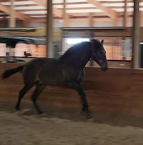 Tanzanite is the tallest of our 2023 foal crop. Born April 2023 she was recently weaned and is going to be a rich black, altho she is alrady fuzzing up for winter. She is the first foal out of OMEGA, sired by Halconero. This line is a proven cross which results in friendly dispositions, excellent brains and like her half siblings, she has been endowed with tons of athleticism. Her black sire Preto (16.1H) is by the imported APSL stallion Damasco. Her grandsire Halconero, the Veiga line multi-disciplined black grand prix jumper and bullfighting stallion. UTAH
